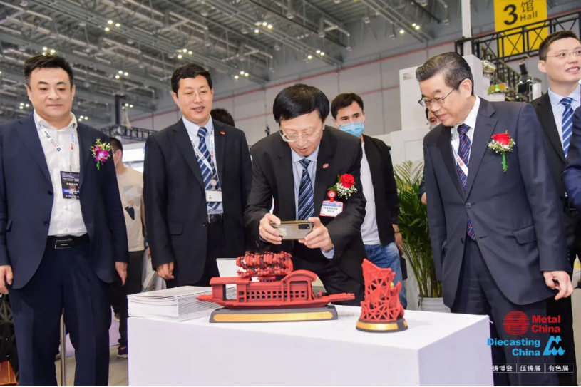 中国钢铁工业协会党委书记、执行会长何文波,中国机械联合会副会长、中国铸造协会会长张立波,中国通用机械工业协会会长黄鹂,中国机械工程学会工业炉分会理事长易光,中国铸造协会特别顾问、全国政协委员、福耀集团董事长曹德旺,中信泰富特钢集团常务副总裁王文金,中国铸造协会名誉会长、宁夏共享集团股份有限公司董事长彭凡,河钢集团副总经理李毅仁,中国铸造协会副会长、新兴铸管股份有限公司总经理何齐书,北京建龙重工集团有限公司副总裁阮小江,中国铸造协会副监事长、日月重工股份有限公司董事长傅明康,包头钢铁(集团)有限责任公司副总经理、内蒙古包钢钢联股份有限公司董事长、党委书记刘振刚,中国铸造协会副会长、玫德集团董事局主席孔令磊,中国铸造协会常务理事、力劲集团创始人刘相尚等领导和作为压铸工业展览会协办单位的苏州市压铸技术协会会长、苏州春兴精工股份有限公司创始人孙洁晓,香港铸造业总会会长、顺景园精密铸造(深圳)有限公司董事长蔡子芳以及来自泊头、渑池、岚县、溧阳、铜川、平阴、本溪、喀左等地方政府,中国内燃机工业协会秘书长邢敏、中国机床工具工业协会执行副理事长 郭长城、中国汽车工业协会副秘书长师建华、中国轴承工业协会理事长周宇、中国有色金属工业协会再生金属分会副会长刘巍、中国表面工程协会副秘书长宋志富,国家开放大学等社团组织和院校的领导、代表悉数参加活动,与主席台上下嘉宾、现场广大展商、线上线下观众共同见证并庆祝展会开幕。