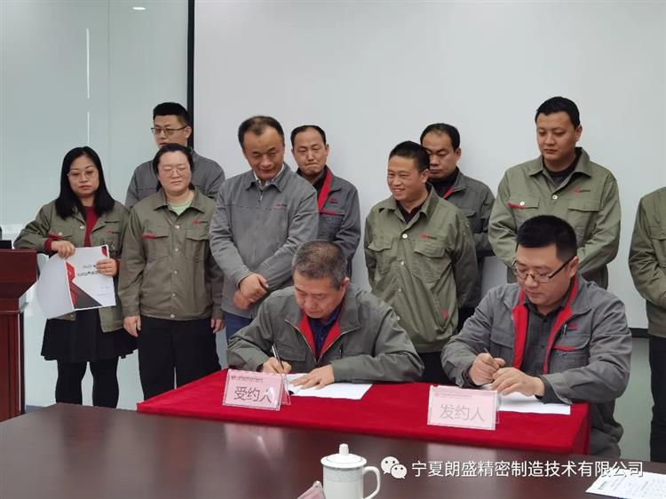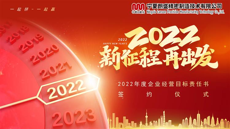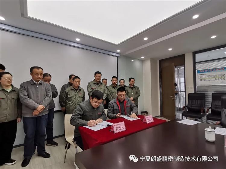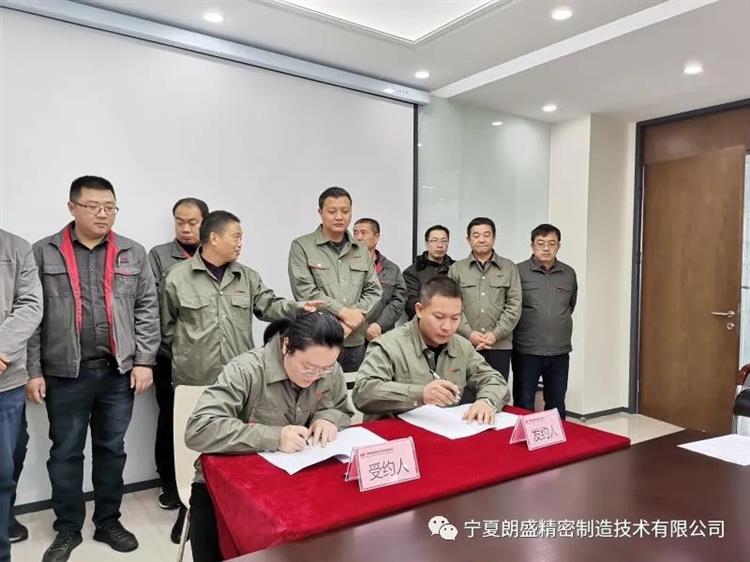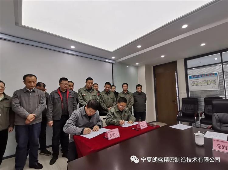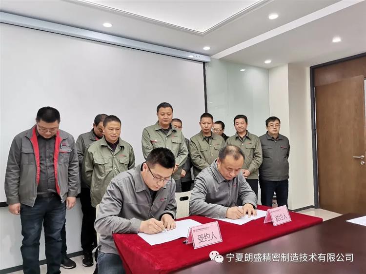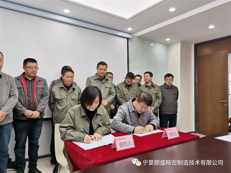 2022年2月18日上午,宁夏朗盛精密制造技术有限公司召开2022年度企业经营绩效考核责任书签约会议,对2022年经营目标及重点任务进行全面落实。集团总裁兼朗盛公司董事长董艳女士、集团财务总监陈国利、集团人力资源总监刘艺、朗盛公司总经理徐红军及中高层管理人员出席了签约仪式。