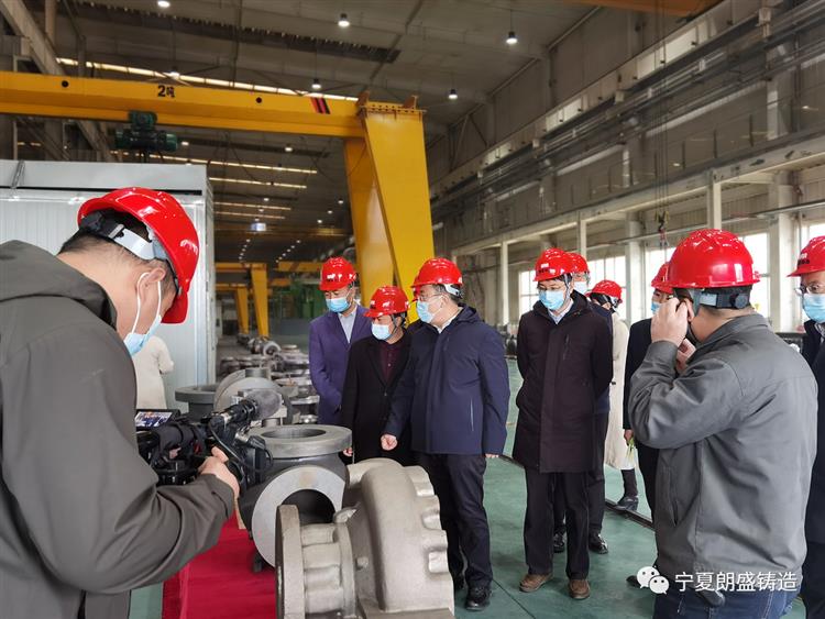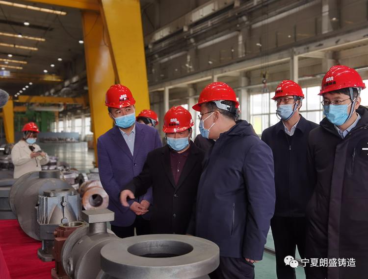 在宁夏朗盛精密制造技术有限公司总经理徐红军的陪同下,王学军先后考察了公司砂铸车间,详细了解企业生产经营、数字化车间运营管理等情况。