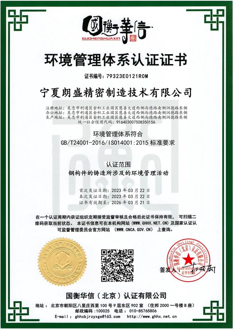 环境管理体系认证证书