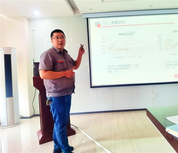 韧性成长 稳中求进 —宁夏朗盛2023年中期经营会 7月26日,宁夏朗盛铸造召开2023年中期经营分析会,集团公司董事长董总、集团财务总监、集团人力总监以及朗盛公司主管以上管理人员全部参会。会议内容从上半年重点工作回顾、急需解决的主要矛盾及问题、下半年重点工作计划、所需资源支持四个方面进行。 一、总经办汇报 总经理汇报 营销中心总监汇报 生产中心总监汇报 总经理徐红军充分肯定了上半年取得的阶段性成果,指出销售工作较去年同期合同额增长10.3%,新产品新品种开发227种,提高质量工艺优化53项等。对于下半年的工作计划中,重点强调指出要稳定产品质量,提升客户意识,强调“发动一场为客户着想的革命,使企业成为为顾客着想的企业”。并对下半年的工作重点做出了19条工作部署和安排。最后徐总与大家共勉“既然选择了远方,便只顾风雨兼程。” 2、 各部门汇报 国际营销部部长汇报 国内营销部部长汇报 订单管理部部长汇报 质量管理部部长 安全环保部部长汇报 人力行政部部长汇报 物资采购部部长汇报 技术供应部部长汇报 各部门负责人一一做了工作汇报。汇报中大家对各部门工作年度目标完成情况、工作中的不足、下半年工作计划以及工作中所需助力和资源都进行了客观的报告和分析。 3、 董事长发言 最后,集团董事长董艳对本次半年中期经营会做出了点评。董事长总结到,本次中期经营会开的很成功,总结的很客观,准备的很充分。虽然上半年面临了极为严峻的外部环境和前所未有的困难挑战,但公司上下都以坚定的毅力,迎难而上、逆境突围。董事长对全体员工上半年工作给予了充分肯定,同时也对下半年工作提出了建议及要求,鼓励全体员工再接再厉,以最好的状态来迎接下半年的工作挑战。 此次2023年中期会议的召开统一了思想、凝聚了共识、明确了方向,为下半年度高效开展各项工作奠定了坚实基础。 “风劲潮涌,自当扬帆破浪;任重道远,更需策马扬鞭”,我们也预祝公司在董总和徐总的带领下,中层管理人员能认真贯彻落实本次会议精神到全体员工,求真务实,开拓创新,进一步锻造核心竞争力,为所有客户提供保质保量的产品和服务,确保圆满完成2023年度任务指标。